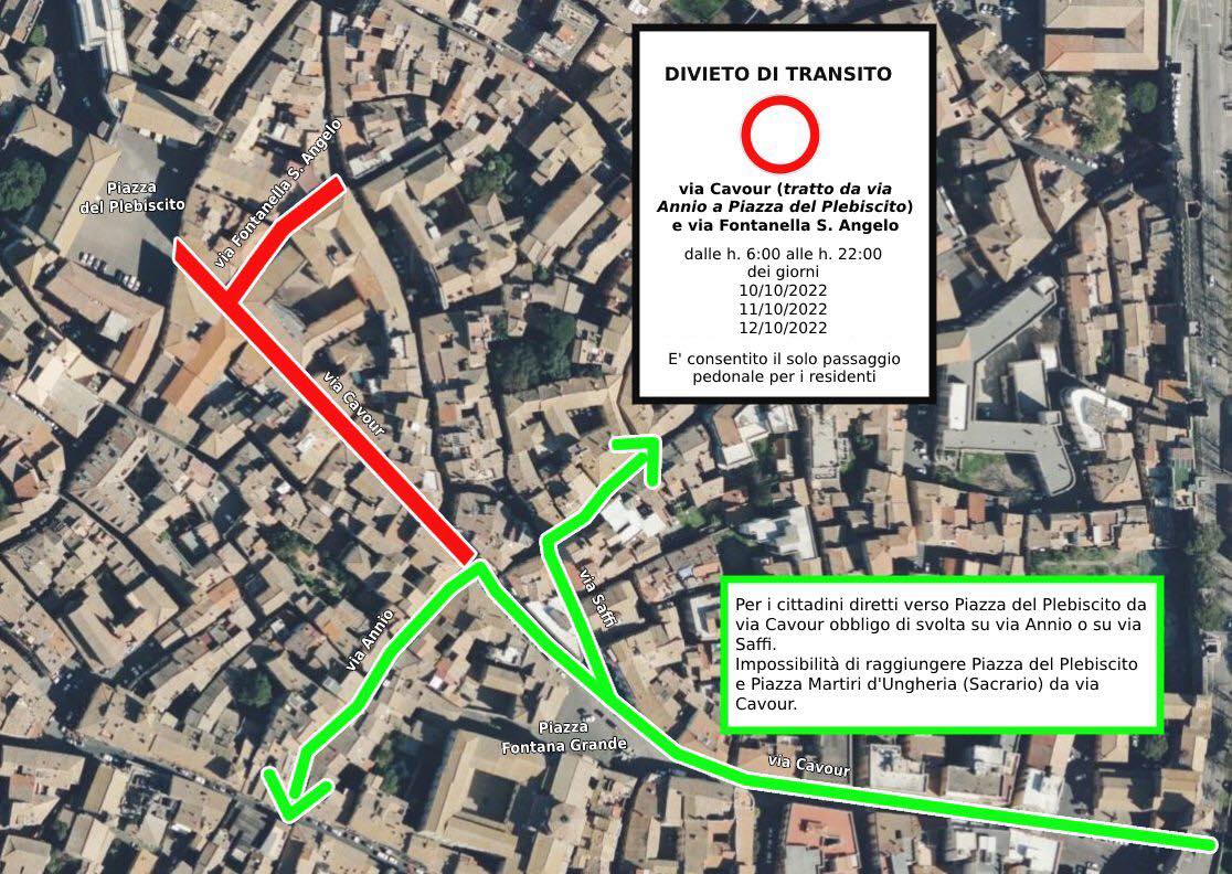 VITERBO – Proseguono le riprese cinematografiche in città per il film horror della Disney da parte della Cattleya. Si ricordano a tal proposito i provvedimenti in corso e quelli dei prossimi giorni. Dal 9 ottobre (e ancor di più da lunedì 10) attenzione puntata sulla seconda zona interessata dai provvedimenti (piazza del Plebiscito, tratto via Cavour e vie limitrofe). Queste le misure che verranno adottate: divieto di sosta con rimozione in via Cavour, dalle ore 18 del 9 ottobre fino alle ore 22 del 12 ottobre; dalle ore 6 del 10 ottobre alle ore 22 del 12 ottobre, divieto di circolazione veicolare in via Cavour (tratto compreso tra via Annio e piazza del Plebiscito) e via Fontanella di Sant’Angelo (tratto compreso tra via Saffi e via Cavour); direzione obbligatoria da via Cavour verso via Annio. Si precisa che dalle ore 22 alle ore 6 dei giorni interessati dalle riprese, la circolazione veicolare su entrambe le vie (via Cavour e via Fontanella del Suffragio) sarà regolare. Dalle ore 8 del 10 ottobre alle ore 23 del 12 ottobre divieto di transito anche in via Ascenzi. Dalle ore 23 alle ore 8 dei giorni interessati dalle riprese il traffico tornerà regolare. A partire dalle ore 7 del 10 ottobre ininterrottamente fino alle ore 23 del 13 ottobre divieto di sosta su entrambi i lati e divieto di circolazione per tutte le categorie di veicoli in via San Clemente. Si ricorda che anche il transito pedonale durante le riprese è interrotto. Si ribadiscono inoltre i provvedimenti già in vigore: in via Ascenzi fino alle ore 23 del 12 ottobre, divieto di sosta con rimozione forzata per tutte le categorie di veicoli (ad eccezione dei mezzi della produzione). Fino alle ore 24 del 13 ottobre è vietato sostare nell’area di parcheggio di Valle Faul, dall’ingresso lato Porta Faul fino alla fontana a raso (circa 1200 mq). Per il comunicato completo consultare il sito istituzionale www.comune.viterbo.it — cristina pallottaaddetto stampacomune di viterb.
