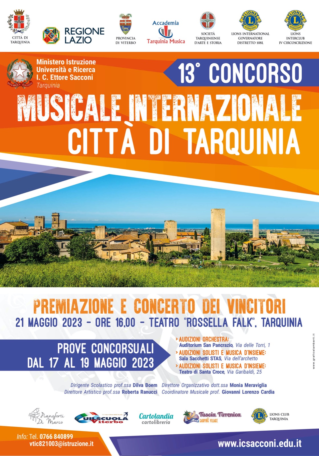 TARQUINIA – Il Concorso Musicale Internazionale Città di Tarquinia è pronto a trasformare il comune tirrenico nella “città della musica” dal 17 al 19 maggio. Le audizioni della rassegna organizzata dall’IC “Ettore Sacconi” si svolgeranno tra l’oratorio di Santa Croce, l’auditorium San Pancrazio e la sala Sacchetti, a palazzo dei Priori. A valutare le oltre 200 prove in programma la giuria composta dai docenti Antonella Ceravolo, Pasquale Lucia, Piero Iacobelli, Alessandro Verrecchia e Giuliano Bisceglia del conservatorio “Santa Cecilia” di Roma, Alessandro Cammilletti, Fabio Renato D’Ettorre del conservatorio “Francesco Morlacchi” di Perugia, Mauro Marcaccio e Giampio Mastrangelo del conservatorio “Alfredo Casella” de L’Aquila, e il docente Giovanni Lorenzo Cardia del liceo musicale “Polo Bianciardi” di Grosseto, coordinatore della commissione. “La nostra orchestra aprirà le tre giornate di audizioni – affermano dall’IC “Ettore Sacconi” -. Un’esibizione dal piccolo ma grande valore simbolico, perché significherà mettersi definitivamente alle spalle gli anni della pandemia, che non ci ha permesso di tenere tre edizioni della manifestazione. Le prove, aperte al pubblico, renderanno il centro storico un palcoscenico tutto dedicato alla musica”. Quarantuno gli istituti scolastici in concorso, per oltre 600 studenti in gara tra le diciassette le categorie della rassegna: otto riservate agli studenti delle scuole medie a indirizzo musicale; quattro ai licei musicali e alle scuole superiori; tre ai diplomati di conservatorio. Si va dai solisti di pianoforte, chitarra, strumenti a fiato, ad archi e di vario tipo, alla musica d’insieme, fino ai cori e alle grandi orchestre. La premiazione in forma di concerto con i vincitori delle sezioni in concorso si terrà al teatro comunale “Rossella Falk” il 21 maggio, a partire dalle 16. Per l’organizzazione della manifestazione, la dirigente scolastica dell’IC “Ettore Sacconi” Dilva Boem si è affidata alla squadra collaudata composta dal direttore organizzativo Monia Meraviglia, dal direttore artistico Roberta Ranucci e dal coordinatore musicale Giovanni Lorenzo Cardia. Patrocinato dalla Regione Lazio, dal Comune di Tarquinia, dalla Società Tarquiniense d’Arte e Storia, dall’Accademia Tarquinia Musica, dal Lions International Governatore Distretto 108L, dal Lions Interclub IV Circoscrizione e dal Lions Club Tarquinia, il Concorso Musicale Internazionale Città di Tarquinia ha il sostegno di Pianoforti Di Marco, Uil Scuola Viterbo, Cartolandia Cartolibreria e Tuscia Tirrenica Camping Village.