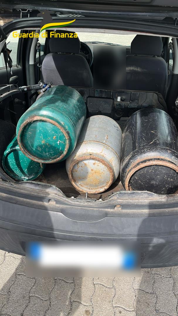 Il soggetto è stato sorpreso in flagranza mentre ricaricava pericolosamente le bombole ad uso domestico, utilizzando un adattatore per prelevare il carburante dalla colonnina del suo distributore.