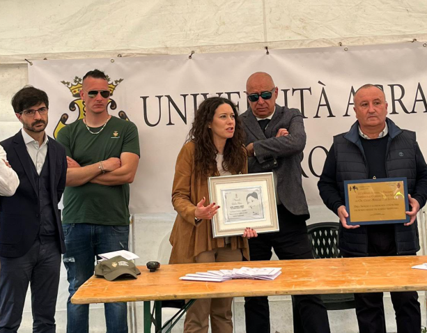 TARQUINIA – “È stato un grande onore oggi ricevere il premio del 1* Memorial: Valentina Paterna da parte del Presidente Alberto Riglietti e dell’intero consiglio dell’Università Agraria durante l’inaugurazione della tradizionale Festa della Merca a Tarquinia. Questa la motivazione del premio che ho ritirato non priva di commozione: ‘La Donna è il cerchio completo. Dentro di Lei c’è il potere di creare, nutrire e trasformare’. Una edizione che nel celebrare la nostra identità rurale, il legame con la terra e la cultura dell’allevamento ricorda la concittadina e consigliera regionale prematuramente scomparsa un anno fa. Entrambe forse non avevamo idea dove ci avrebbero condotto le nostre sfide e le nostre esperienze politiche ma il sorriso di Valentina e la sua caparbietà mi restano di insegnamento e di sprone per l’attività che porto avanti ogni giorno per i nostri territori. Grazie all’Università Agraria di Tarquinia per l’invito e per mantenere viva questa importante tradizione”.
