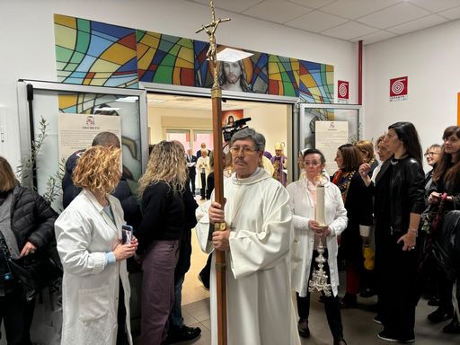 ARICCIA – Si è svolta oggi una cerimonia solenne e carica di significato all’Ospedale dei Castelli: l’apertura straordinaria della Chiesa Giubilare presso la Cappella San Camillo de Lellis, che per l’intera settimana, fino a lunedì 21 aprile, accoglierà fedeli, pazienti, operatori sanitari e visitatori in un tempo speciale di raccoglimento, preghiera e riflessione.Promosso in occasione del Giubileo degli ammalati, l’evento è stato reso possibile grazie alla collaborazione tra la Asl Roma 6, la Diocesi Suburbicaria di Albano e la Santa Sede, ed è stato impreziosito dalla celebrazione eucaristica presieduta da Sua Eccellenza Monsignor Vincenzo Viva, Vescovo di Albano. Presenti anche numerose autorità civili, religiose e militari, oltre a una nutrita rappresentanza della Rete Oncologica Aziendale e dei volontari che operano quotidianamente all’interno delle strutture sanitarie del territorio. La cappella, cuore spirituale dell’ospedale, ha accolto i fedeli con la semplicità e la forza di un luogo dedicato alla cura dell’anima. All’interno, simboli religiosi e immagini sacre sono diventati segni tangibili di un messaggio di vicinanza, conforto e fede, proprio là dove la malattia mette a dura prova le fragilità umane. A rendere ancora più speciale l’occasione è stata la piantumazione simbolica di due giovani ulivi, posizionati temporaneamente all’interno della cappella e che saranno successivamente collocati all’esterno, nell’area verde dell’ospedale. Un gesto semplice, ma dal profondo valore spirituale e simbolico: l’ulivo, nella tradizione cristiana, è segno di pace, rinascita e speranza, e in Quaresima e Pasqua rappresenta la vita che rinasce dopo il sacrificio e il silenzio. Un messaggio potente che si inserisce perfettamente nello spirito del Giubileo e nel quotidiano cammino di cura della struttura sanitaria. “Questa Cappella, dedicata a San Camillo de Lellis, santo protettore dei malati, degli infermieri e degli ospedali- ha dichiarato Giovanni Profico direttore generale della Asl Roma 6,- è oggi anche Chiesa”. “In un luogo di cura come questo, dove ogni giorno si affrontano la sofferenza, la fragilità e la speranza- ha inoltre sottolineato- l’accoglienza assume un significato ancora più profondo. L’accoglienza della persona, della sua storia, del suo dolore. L’accoglienza che si fa carezza, ascolto e dignità”.
