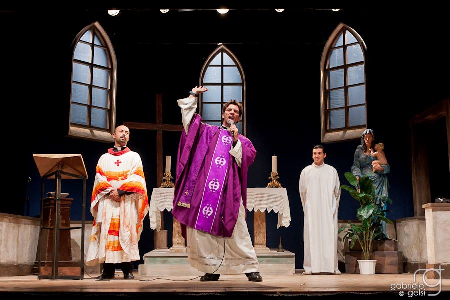 CAPRAROLA – Domenica 27 Aprile, alle 17:30 al Teatro Don Paolo Stefani di Caprarola va in scena “Due preti di troppo”. Quando tutto sembra perduto, quando le cose sembrano andare in un’ unica direzione, quando la vita sembra averti abbandonato, c’è sempre un momento, un attimo che all’improvviso arrivi l’eroe…e non è obbligatorio che abbia un mantello, un costume blu e una “S” sul petto, alcune volte possono indossare un colletto bianco, una camicia e un pantalone nero e avere come arma non il laser dagli occhi ma le parole che a volte sono più incisive dei fatti…in “DUE preti di Troppo”, i nostri due protagonisti, Don Ezio e Don Sabatino, riescono a salvare una comunità attraverso la musica che spesso è il collante di pace fra intere popolazioni! È la classica storia, del cattivo e dell’eroe e come in ogni storia il cattivo viene surclassato, dopo vari eventi che lo vedono vincente, dai nostri supereroi…ma noi raccontiamo una storia vera e non per questo debba esserci per forza happy end ma nemmeno una tragedia…insomma si racconta la vita che può essere bella o brutta, ma alla fine sempre vera. Due preti di troppo è un turbinio di comicità, verità ma soprattutto musica che accompagnerà i nostri protagonisti in tutta la storia…grazie alla creazione di un coro…che potrà salvare le sorti di una chiesa completamente abbandonata!
