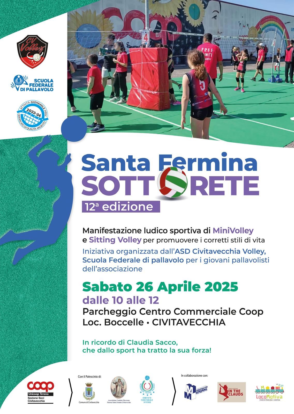 Invece, niente da fare: “Annullata la dodicesima edizione di Santa Fermina Sotto Rete della Civitavecchia Volley. In osservanza delle disposizioni del Governo e anche del CONI e della Fipav, e dimostrando vicinanza e cordoglio per il lutto del Santo Padre, la manifestazione di urban minivolley, che avrebbe dovuto svolgersi il 26 aprile presso il parcheggio della Coop é stata annullata. Lo comunica con dispiacere la Civitavecchia Volley che organizza l’evento da dodici anni, con il patrocinio del Comitato Diocesano Patrona Santa Fermina, della Fipav e del Comune di Civitavecchia, e in collaborazione con UniCoop Tirreno Sezione Soci Civitavecchia, In the Clauds, LocoMotiva e Montalto Montaggi”.