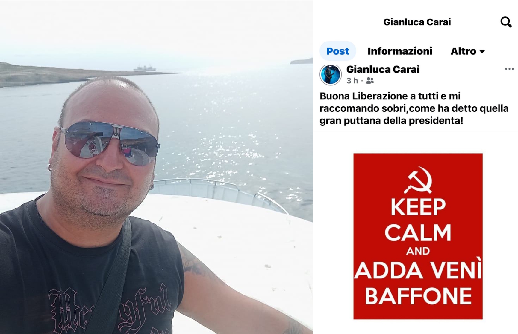 In occasione dell’80º anniversario della Liberazione, Carai ha scelto di celebrare la ricorrenza non con un pensiero di unità o memoria storica, ma con un indegno post sul proprio profilo Facebook in cui ha rivolto un insulto sessista gravissimo alla Presidente del Consiglio, Giorgia Meloni, definendola pubblicamente una “gran puttana“.