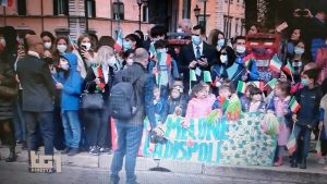 “I più piccoli – ha raccontato il dirigente della Melone, Riccardo Agresti – accompagnati dai propri genitori, si sono schierati fieri in prima fila con in mano uno striscione della nostra scuola appositamente creato, adornati da pon pon e bandierine tricolore, e con orgoglio hanno offerto il loro cuore e il loro amore cantando innumerevoli volte l’inno degli italiani davanti alla Presidente del Senato, Maria Elisabetta Alberti Casellati, al Ministro della Difesa, Lorenzo Guerini, e ad altre altissime autorità militari, inducendo tutti, soprattutto la stampa, tanto da essere