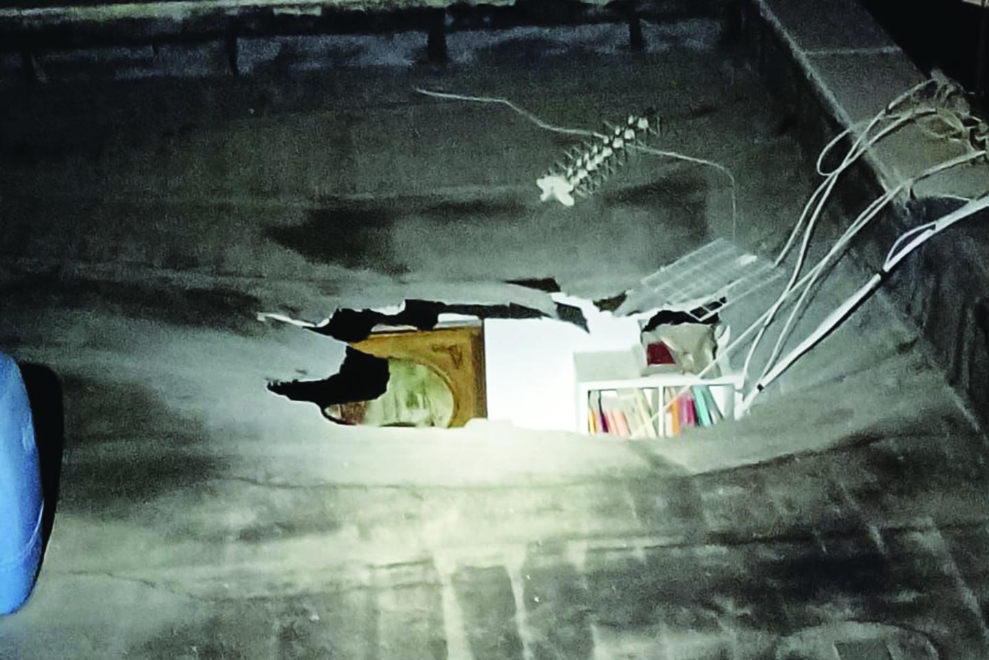 Poco prima delle 19.30, per cause al vaglio dei vigili del fuoco, si è aperto uno squarcio nel tetto dell’attico dello stabile al civico 3.