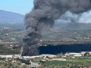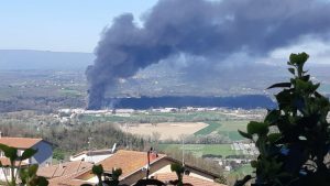 Vasto incendio devasta la fabbrica di sanitari Gsi a Gallese