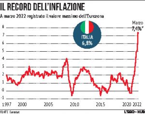 BRUXELLES – Un leggerissimo miglioramento rispetto alle ultime stime, ma la situazione dell’economia nella Ue è sicuramente critica. L’Eurostat comunica che l’inflazione annua nell’area euro in marzo si è attestata al 7,4%, raggiungendo il massimo nella storia della moneta unica. Una crescita dei prodotti al consumo, dunque, in rialzo dal 5,9% di febbraio ma lievemente al di sotto della stima preliminare di inizio mese (+7,5%). Secondo l’istituto statistico dell’Unione Europea l’inflazione, inferiore al consensus, resta molto pronunciata: per dare un’idea della gravità del momento, basti pensare che nel marzo 2021 era stata dell’1,3%.