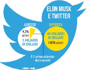 La spiegazione di Musk rispetto a questo inatteso stop nella transazione fa riferimento agli account bot presenti attualmente su Twitter. “Sono in attesa – spiega Mr. Tesla – di dettagli che supportino il calcolo che gli account di spam/fake rappresentino meno del 5% degli utenti”. A fine aprile il fondatore di Tesla aveva annunciato un accordo per l’acquisto del social network: un’operazione da 44 miliardi di dollari. L’accordo di Musk per Twitter ha valutato ogni azione a 54,20 dollari.