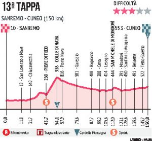LA TAPPA DI DOMANI. Domani tredicesima frazione, la Sanremo-Cuneo, di 150 km.