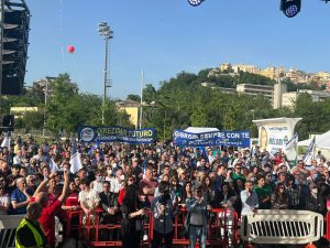 FROSINONE – Con un comizio durato 45 minuti, ieri pomeriggio Giorgia Meloni ha infiammato la platea dal palco all’interno del Parco Matusa di Frosinone. Ha ringraziato l’amministrazione in carica, a cominciare dal sindaco Nicola Ottaviani, e tutta la classe dirigente di Fratelli d’Italia. Augurandosi continuità con Riccardo Mastrangeli.