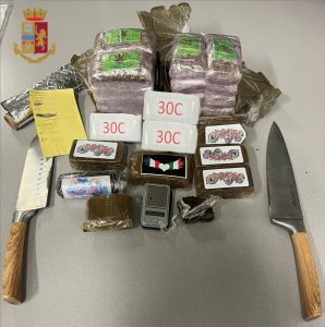 ROMA – Continua, incessante, da parte della Polizia di Stato l’attività di prevenzione e repressione dei reati inerenti la detenzione e lo spaccio di stupefacenti. A Primavalle, a seguito di attività di indagine, gli agenti della Polizia della Sezione Volanti, hanno proceduto alla perquisizione domiciliare di un soggetto, italiano di 23 anni, in via del Podere Fiume, sospettato di detenere stupefacente in casa. Una volta all’interno dell’abitazione, i poliziotti sono stati attratti dal forte odore tipico dell’hashish, che li ha condotti sul terrazzo dove hanno rinvenuto dell’hashish, all’interno di un armadio. In frigorifero invece, sono stati sequestrati numerosi involucri contenenti la medesima sostanza per un peso di circa 2,850 kg. suddivisa in 30 panetti mentre, dentro un cassetto della cucina è stato trovato un bilancino di precisione e materiale per il confezionamento oltre a due coltelli da cucina intrisi di stupefacente. Dopo la convalida, per il giovane è stata disposta la misura degli arresti domiciliari.