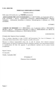 Non è stato “rimandato” alcunchè, il Tribunale di Viterbo ha dichiarato che è competente il Giudice Amministrativo (TAR) che non può più essere adito perché è ormai decorso il termine decadenziale entro cui impugnare gli atti amministrativi emessi dal Comune di Bomarzo.