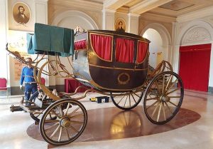 L’antico mezzo di trasporto, donato nel XVIII secolo dai Conservatori di Roma ai Magistrati di Viterbo ed utilizzato fino agli inizi del ‘900 per le solenni uscite istituzionali dei notabili dell’epoca, nel 2014 veniva smontata e portata via dalla sua collocazione originaria, ovvero la Sala della Madonna della Quercia, a Palazzo dei Priori, di fronte alla Cappella Palatina.