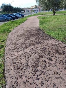Succede al parco della Solidarietà nella popolosa zona della città dove, in questi giorni, si susseguono le segnalazioni dei residenti che denunciano l’estrema pericolosità dei vialetti completamente coperti da un manto compatto di olive.