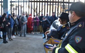 Dopo i saluti e la presentazione dell’iniziativa, gli entusiasti ospiti sono stati omaggiati dal personale dell’ Ufficio Relazioni con il Pubblico della Questura di gadget “griffati” Polizia di Stato.