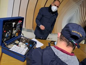 I ragazzi hanno potuto divertirsi con lampeggianti, sirene e palette, interagendo anche via radio con la sala operativa, grazie ai poliziotti della Sezione Polizia Stradale di Frosinone; a seguire la Polizia Scientifica, che ha mostrato come vengono eseguiti i rilievi delle impronte digitali sulle scene del crimine.