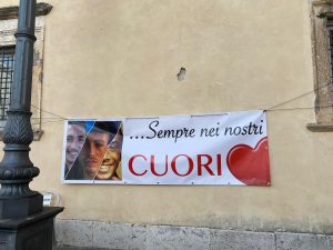 Alcuni hanno esposto anche striscioni per chiedere “giustizia”. “Ti salutano i tuoi fratelli”, scrivono su un cartello di colore rosso i compagni di sempre, di tante serate passate su quelle scalette che portano nel centro storico del paese. “Thomas, il figlio di tutti noi”, la scritta su un cuore rosso.