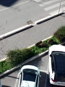 “Mattina di domenica. I cinghiali attaccano in tre postazioni diverse su Via Genova.”