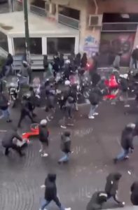 In occasione della partita di ritorno degli ottavi di Champions League tra Napoli e l’Eintracht di Francoforte c’è stata una vera e propria guerriglia urbana. Scontri in pieno centro tra i tifosi partenopei e i tedeschi prima del match tra il terrore di passanti e commercianti. Tensione anche al termine della gara, vinta dal Napoli, con un gruppo di ultras napoletani che ha tentato di avvicinarsi all’hotel dei tedeschi proprio mentre stavano per iniziare le operazioni di trasferimento dei supporter sui bus per portarli via dalla città. Un gruppo di napoletani ha fatto esplodere bombe carta e lanciato pietre. Le forze dell’ordine hanno usato lacrimogeni e idranti e respinto l’assalto.