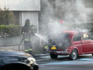 ROMA – Una Fiat 500 degli anni ‘70 ha preso fuoco nel tardo pomeriggio di oggi, martedì 11 aprile, presso viale dei Caduti per la Resistenza, angolo via Carlo Avolio, a Roma.