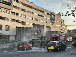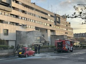 Roma – Spinaceto, a fuoco vecchia Fiat 500. Fiamme domate prontamente da VVF