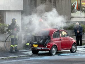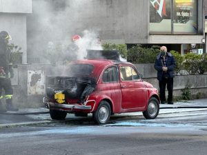 ROMA – Una Fiat 500 degli anni ‘70 ha preso fuoco nel tardo pomeriggio di oggi, martedì 11 aprile, presso viale dei Caduti per la Resistenza, angolo via Carlo Avolio, a Roma.