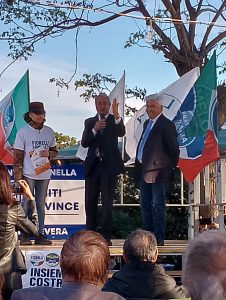 “Uniti si vince”, recita lo slogan scelto da Fiorelli per affrontare la sfida contro il sindaco uscente Tidei e, a giudicare dalla serata di ieri, pare proprio che l’unità nella sua coalizione ci sia e sia forte. Per sostenere l’ingegnere di Santa Severa, infatti, si sono mobilitati tanti big della politica nazionale e regionale, avvicendandosi sul palco accanto a Fiorelli per chiedere ai numerosissimi cittadini accorsi allo Sporting Club di votare per il front-runner del centrodestra. Per Fratelli d’Italia hanno voluto esserci il senatore Marco Silvestroni e i consiglieri regionali Edy Palazzi, Emanuela Mari, Fabrizio Ghera, Massimiliano Maselli. Per la Lega ha portato il suo saluto l’europarlamentare Cinzia Bonfrisco, mentre in rappresentanza di Forza Italia sono intervenuti l’europarlamentare Alessandra Mussolini, il deputato Alessandro Battilocchio e il consigliere regionale Giorgio Simeoni. Tutti hanno insistito sul fatto che queste elezioni per Santa Marinella sono un’occasione irripetibile per inserire l’amministrazione comunale nella stessa “filiera” politico-amministrativa della Regione e del governo nazionale. “Ne ho già parlato con il governatore Rocca ‒ ha rivelato Maselli nel suo intervento – e abbiamo deciso di inserire Santa Marinella tra le tappe della giunta itinerante che il presidente ha intenzione di fare a partire dalle prossime settimane, per coinvolgere sempre di più il territorio nell’amministrazione regionale. Aspettiamo di avere Domenico sindaco”. Fiorelli, per parte sua ha preso la palla al balzo, e ha spiegato che l’intenzione del centrodestra è quella prima di tutto di far tornare Santa Marinella a essere bella, pulita, accogliente: in una parola tornare a essere l’autentica Perla del Tirreno”.