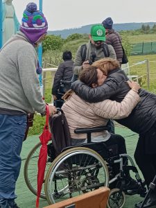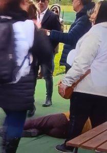 Infine baci e abbracci ai suoi sostenitori, sorrisi e carezze ad una donna in carrozzella e addirittura l’abbraccio con una suora, mentre una donna è caduta a terra, distesa vicino a loro, dichiara di aver raggiunto la pace terrena (foto sotto).