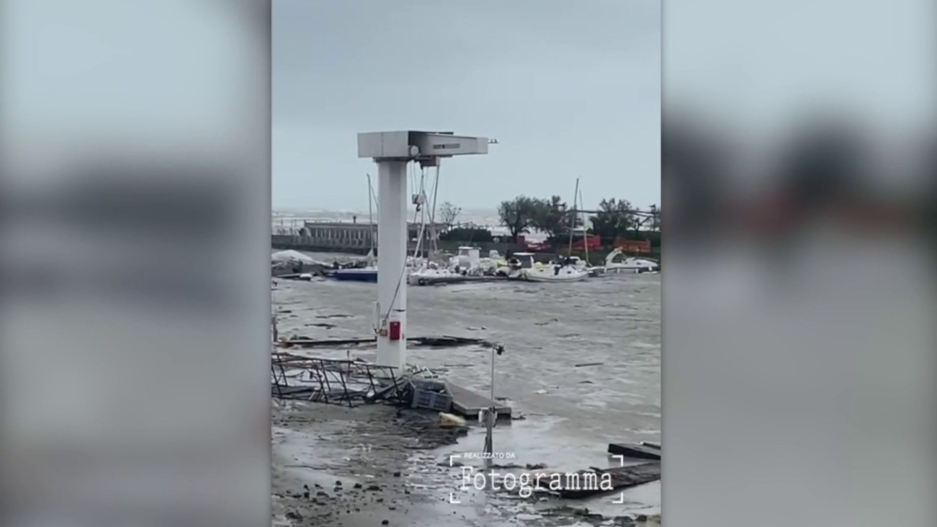 A San Mauro a Mare, piccolo centro balneare in provincia di Forlì-Cesena, la furia dell’acqua e il vento hanno trascinato al largo decine di imbarcazioni. fsc/gtr