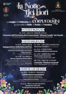 TARQUINIA – Fervono i preparativi per la Notte dei Fiori 2023, tre giorni di eventi che culmineranno nella grande festa del Corpus Domini, così accanto alla tradizionale infiorata tanti eventi.