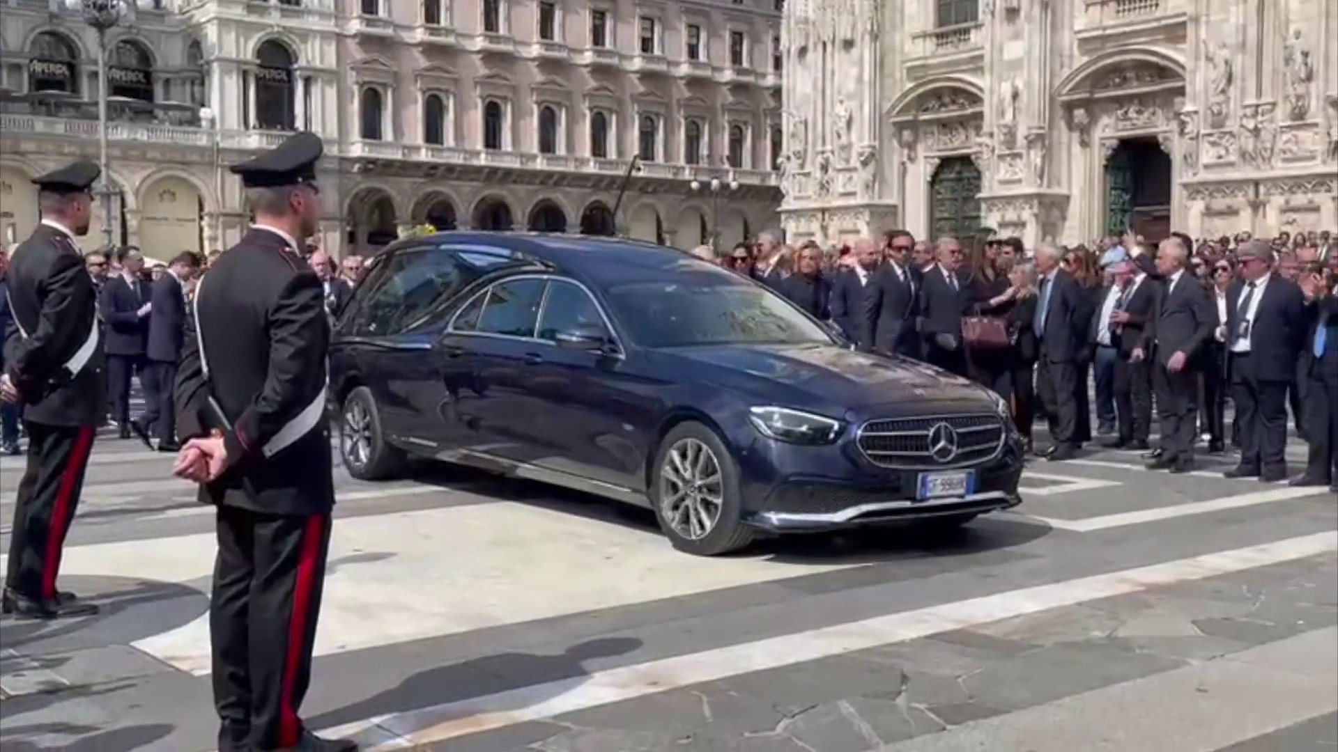 L’auto con a bordo il feretro di Silvio Berlusconi ha lasciato piazza Duomo al termine dei funerali di Stato, tra gli applausi e i cori “C’è solo un presidente” intonati dai tifosi del Milan.