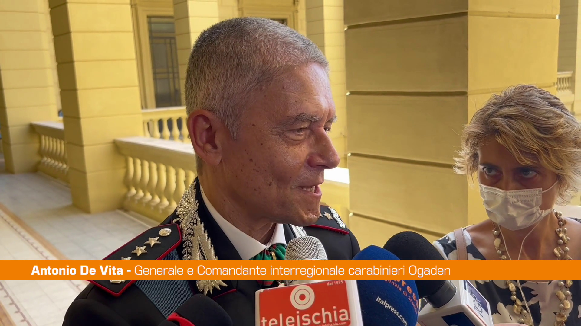 NAPOLI (ITALPRESS) – Cerimonia di avvicendamento al Comando Interregionale Carabinieri “Ogaden”: al Generale di Corpo d’Armata, Andrea Rispoli, subentra il Generale Antonio De Vita, proveniente dal Comando della Legione Lazio. Il passaggio di consegne è avvenuto a Napoli, nella sede del Comando Legione Campania, alla presenza del Comandante Generale dell’Arma, Generale di Corpo d’Armata, Teo Luzi. xc9/pc/gsl