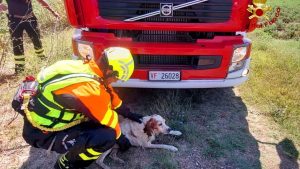 da caccia, è caduto, forse per imprudenza, in un canale che scorre lungo una traversa della Migliara 54. Il cane è rimasto per ore nell’acqua senza riuscire a venire fuori dal canale. Quando la signora si è accorta dell’incidente, e non riuscendo ad aiutare la bestiola, ha deciso di chiamare i Vigili del Fuoco. Intorno alle 11.30 si è mobilitata la squadra di Terracina che giunta sul posto in pochi minuti è riuscita a recuperare Rudy, questo il nome dell’animale, grazie all’azione del Soccorritore Acquatico (SA) che faceva parte della squadra di soccorso. Rudy ha così potuto essere riabbracciato dalla sua padrona.