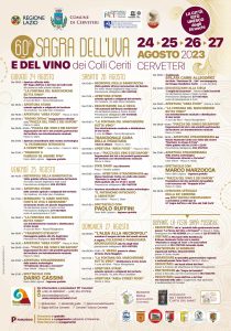 CERVETERI (RM) – Ormai ci siamo. Domani è il grande giorno dell’apertura della 60ª Sagra dell’Uva di Cerveteri, l’appuntamento