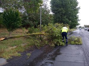 ieri per Cerveteri. La città etrusca è stata sferzata per lunghe ore da raffiche di vento violente, che hanno raggiunto anche i 60 chilometri orari. Ci sono stati tantissimi sradicamenti di alberi che hanno causato danni alle proprietà private e problemi alla circolazione. La buona notizia è che non si sono registrati feriti. La Protezione Civile tra la serata di ieri e la tarda mattinata di oggi è stata chiamata a effettuare ben sei interventi in diversi punti del vasto territorio del Comune. Il primo si è avuto ieri sera, subito dopo cena, quando in Via Furbara Sasso più alberi sono crollati al suolo, invadendo la carreggiata: gli uomini della ProCiv hanno tagliato i tronchi e messo in sicurezza la strada. Nella notte stesso tipo di intervento in Via Settevene Palo Nuova, all’altezza del Bar D’Europe: un grande albero è caduto sulla strada occupando entrambe le carreggiate: il tronco è stato tagliato e rimosso. Ancora nella notte, in Via Caerevetus, nella frazione di Cerenova, un ramo estremamente voluminoso e pesante è rovinato sopra due auto parcheggiate proprio sotto l’albero danneggiandole seriamente. Anche in questo caso i ragazzi della Protezione Civile hanno tagliato e rimosso l’albero e poi hanno finito il lavoro mettendo in sicurezza tutta l’area. E siamo a questa mattina.