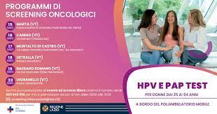 L’iniziativa è sostenuta dalla Regione Lazio. Il truck itinerante sarà a disposizione della popolazione dalle ore 9 alle 13 e dalle 14 alle 18. Durante la giornata dedicata alla prevenzione, per lo screening del collo dell’utero saranno effettuati Pap test e HPV test, per le donne in fascia di età dai 25 ai 64 anni con accesso diretto senza prenotazione. Gli esami eseguiti rientreranno nel percorso di screening secondo i protocolli previsti. Per lo screening mammografico, per le donne in fascia di età compresa tra 50 e 74 anni, sarà effettuata attività di counselling e di prenotazione degli esami mammografici che verranno eseguiti attraverso agende dedicate, senza la necessità di passare ulteriormente per il Cup. Per lo screening del colon retto, per gli uomini e le donne di età tra 50 e 74 anni, sarà effettuata attività di counselling e verranno distribuiti gli appositi kit per la esecuzione dei test Fobt di esame delle feci.