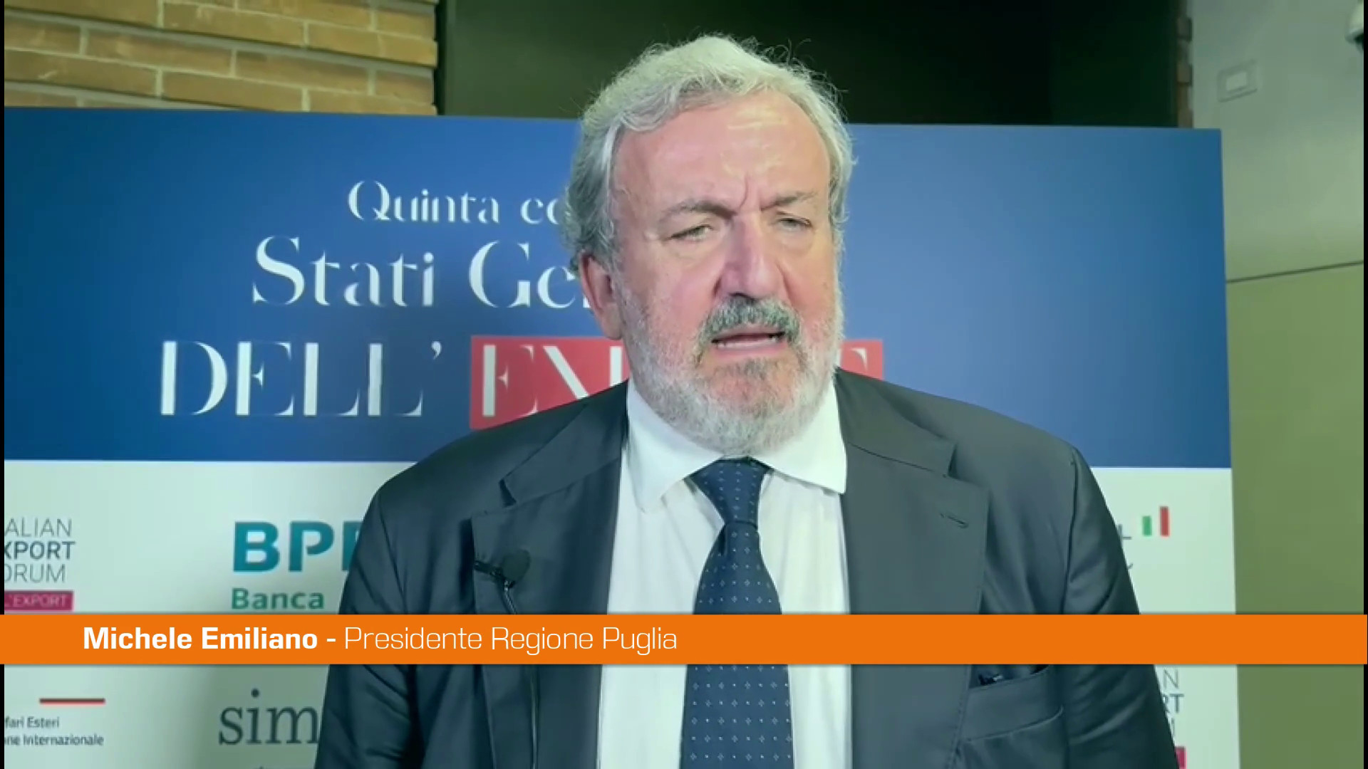ALBA (CUNEO) (ITALPRESS) – “La Puglia ha partecipato con grande interesse agli Stati Generali dell’Export qui ad Alba. Una giornata a discutere e a riflettere su come aumentare la nostra capacità di esportare, ma non solo. Come stabilire legami ed imparare e conoscere i sistemi economici e sociali dei paesi nei quali le merci devono arrivare, e più in generale come aumentare le nostre competenze, perché l’export non è un’attività mordi e fuggi, non è un’impresa istantanea; si coltiva nel tempo, si fonda su credibilità e poi, e questa è la nostra speranza, costruisce amicizia; è poi l’amicizia che dà al business un ruolo importante nel futuro di tante aziende e di tante famiglie”. Lo ha affermato il presidente della Regione Puglia Michele Emiliano partecipando agli Stati Generali dell’Export ad Alba.mgg/ (Fonte video: Regione Puglia)