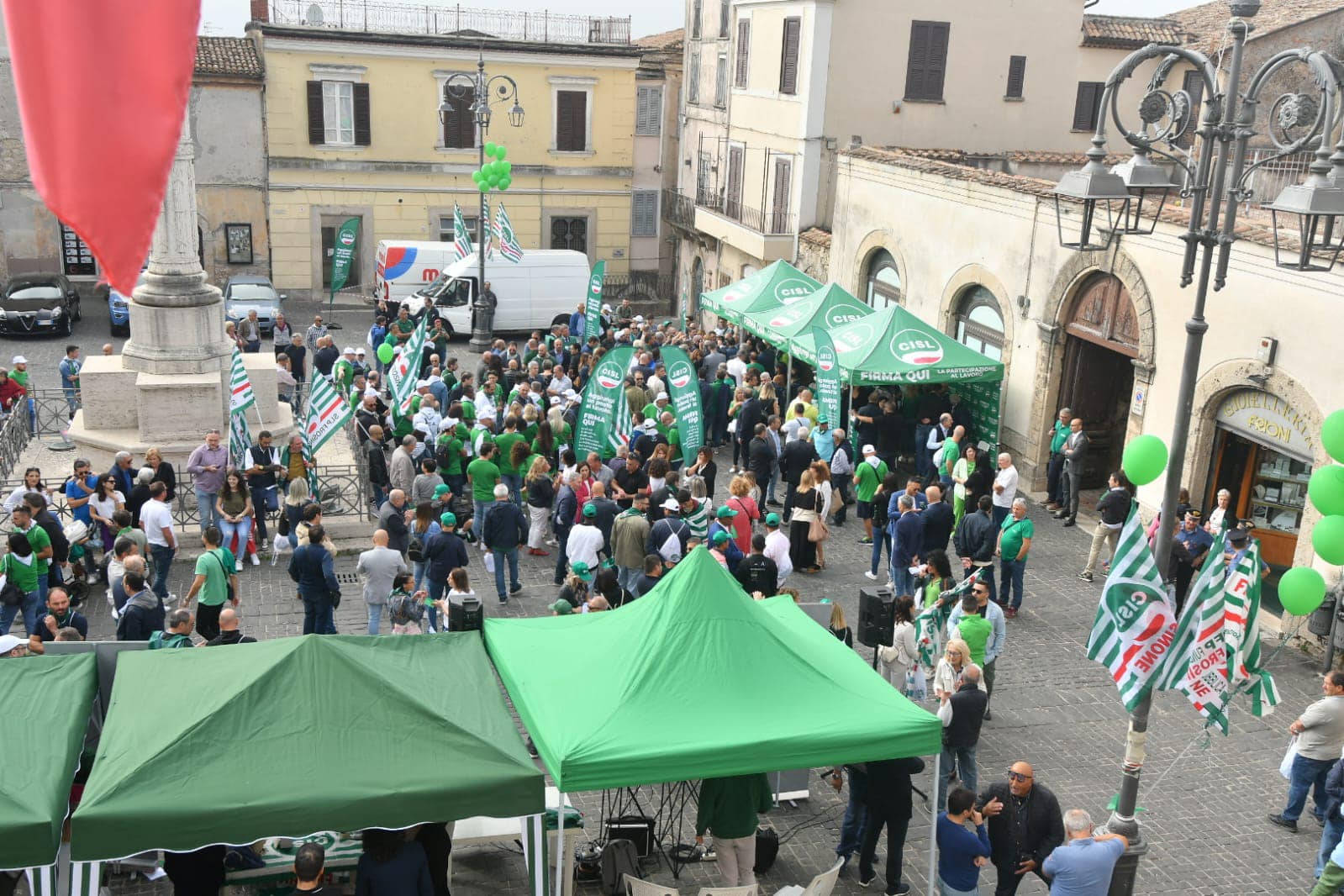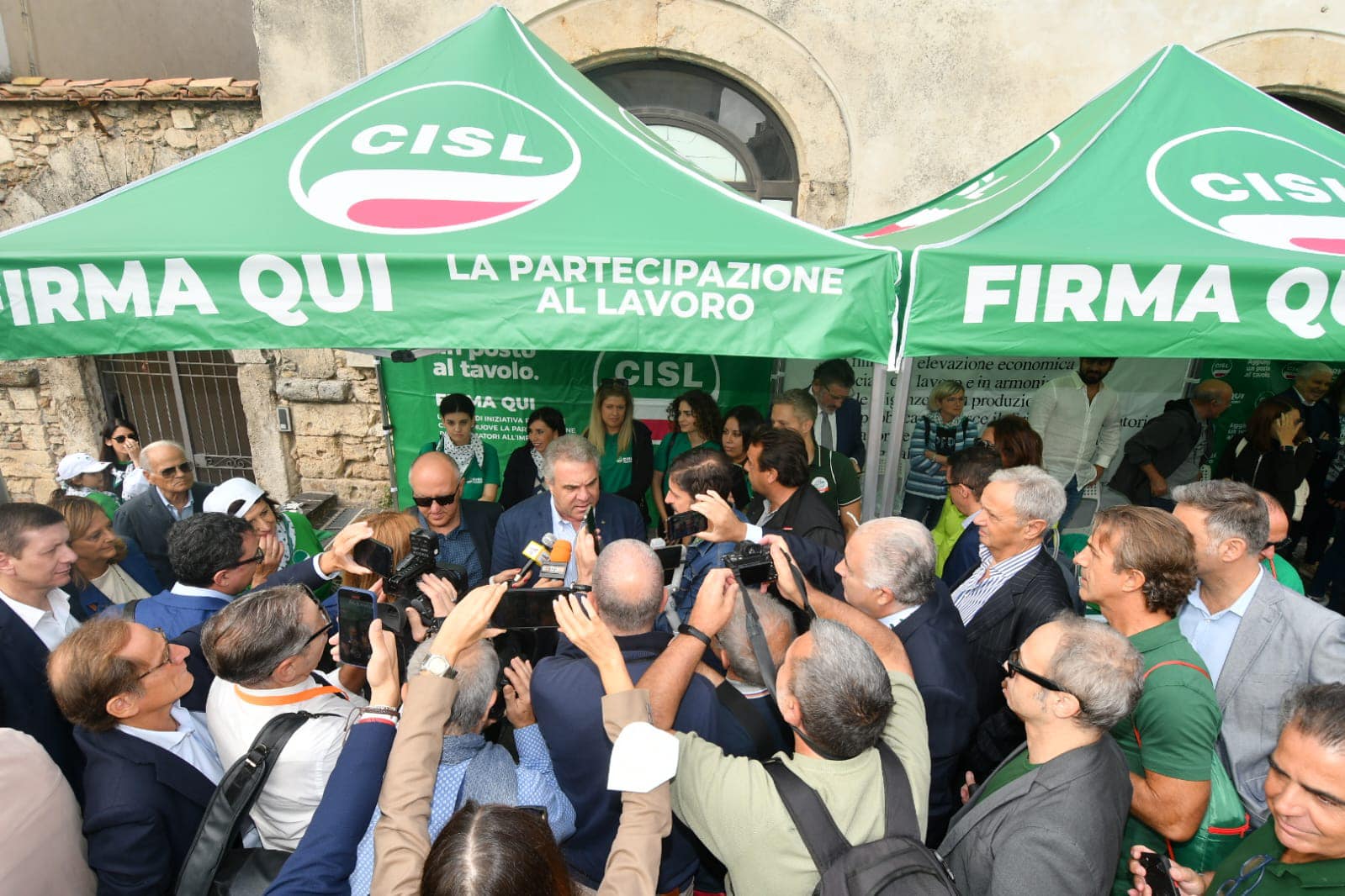 Così il leader Cisl Luigi Sbarra ha salutato i cittadini di Ferentino, localitá in provincia di Frosinone, intervenendo in piazza Matteotti alla seconda giornata della Festa della partecipazione della Cisl in corso ieri ed oggi in tutta Italia per la raccolta firme sulla legge di iniziativa popolare sulla partecipazione dei lavoratori agli utili delle aziende.