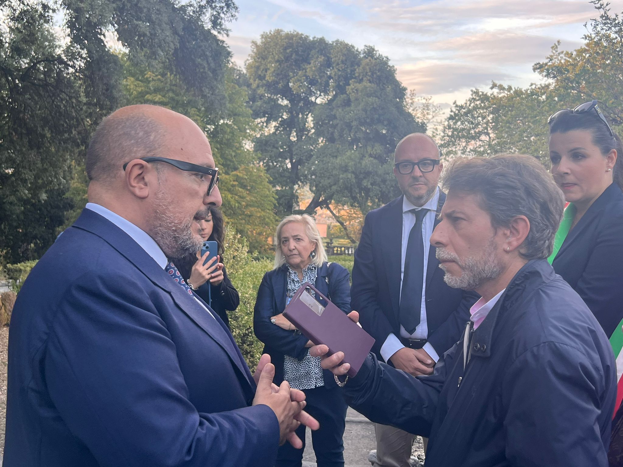 Ad accogliere Sangiuliano al suo arrivo a Villa Lante: la sindaca di Viterbo Chiara Frontini. “Abbiamo approvato in consiglio dei ministri, in una prima fase e poi dopo tutti i pareri dati definitivamente dagli organi appositi, il passaggio dei musei autonomi da 44 a 60″ e all’interno del disegno c’è anche questo sito.- ha spiegato il ministro durante la visita – Cosa significa diventare museo autonomo? Avere più risorse, una maggiore capacità gestionale, una maggiore efficienza nelle scelte che la dirigenza che verra andrà a fare. In questo modo, questa splendida villa verrà elevata allo stesso rango che è stato riconosciuto agli Uffizi, al parco archeologico di Pompei, a quello del Colosseo o alla pinacoteca di Brera, cioè i grandi musei italiani. Un riconoscimento del valore storico-museale di Villa Lante e delle sue potenzialità, anche come fattore di sviluppo socio economico del territorio. Ringrazio l’onorevole Mauro Rotelli, che ci è stato vicino in questo percorso.