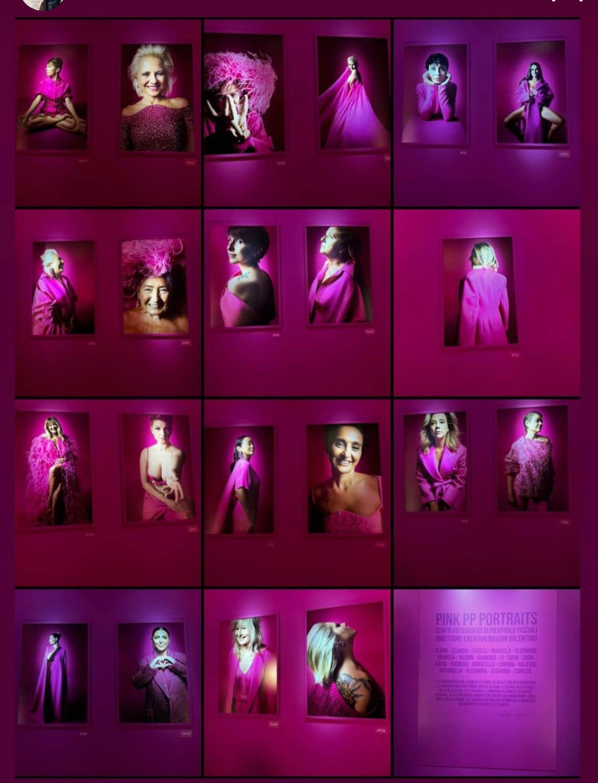 Realizzata all’Isola Tiberina in occasione dell’Ottobre Rosa, è stata curata da Pierpaolo Piccioli, direttore creativo della Maison Valentino, che ha commentato: “La mostra PINK PP Portraits è il racconto di una giornata di storie, di quelle che non dimentichi. È l’incontro con venti donne vestite di rosa, il colore della forza, della resilienza, del coraggio.