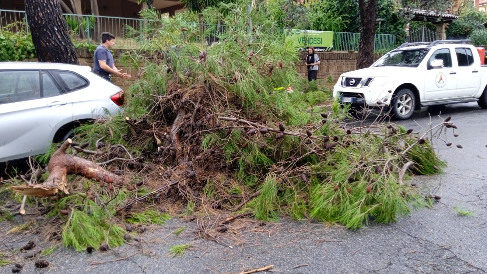 raffiche di vento, temporali e mareggiate. Gli uomini della Protezione Civile hanno lavorato dalla mattina fino alle dieci di sera per mettere in sicurezza strade e aree agricole colpite dalla furia degli elementi. In centro, a Largo Giordano, una squadra ha dovuto sgomberare la strada per un pino caduta sulla sede stradale: l’albero è stato tagliato ed eliminato. Stesso tipo di intervento in Via Pergolesi, frazione di Valcanneto, dove gli uomini della ProCiv hanno dovuto liberare una Bmw rimasta sotto un altro grosso ramo di pino che si è staccato per la furia del vento ed è caduto proprio sopra la vettura. Ancora a Valcanneto, in Via Boito, un altro albero si è spezzato