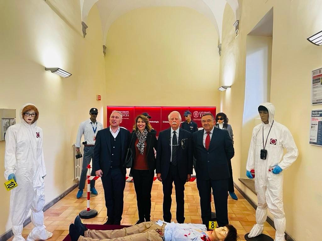 L’incontro si è concluso con una visita al Laboratorio di Criminologia e Scienze delle Investigazioni, dove i presenti hanno potuto esplorare una scena del crimine relativa a un omicidio. Qui, Vincenzo Cianchella, Coordinatore tecnico-scientifico del Laboratorio, ha intrattenuto studentesse e studenti discutendo il processo di sopralluogo giudiziario e le tecniche di investigazione tradizionali e tecnico-scientifiche.