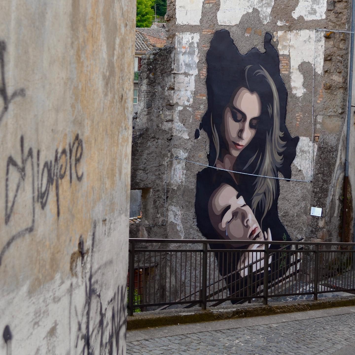 Canepina, “Pietà”. Realizzata sui resti di una casa distrutta per commemorare le 115 vite innocenti, in maggioranza donne e bambini, vittime del bombardamento del 5 giugno 1944.