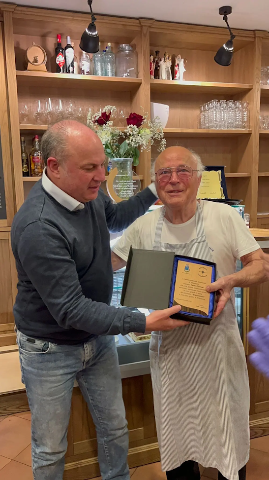 Il tutto si è svolto tra la sincera commozione dei familiari e dei clienti presenti alla consegna della targa, fatta dal sindaco Landi. Commovente anche la targa donata ad Enrico con la scritta: “Con i più sinceri auguri per un nuovo cammino che sia lungo e pieno di gratificazioni, successo e infinite soddisfazioni.