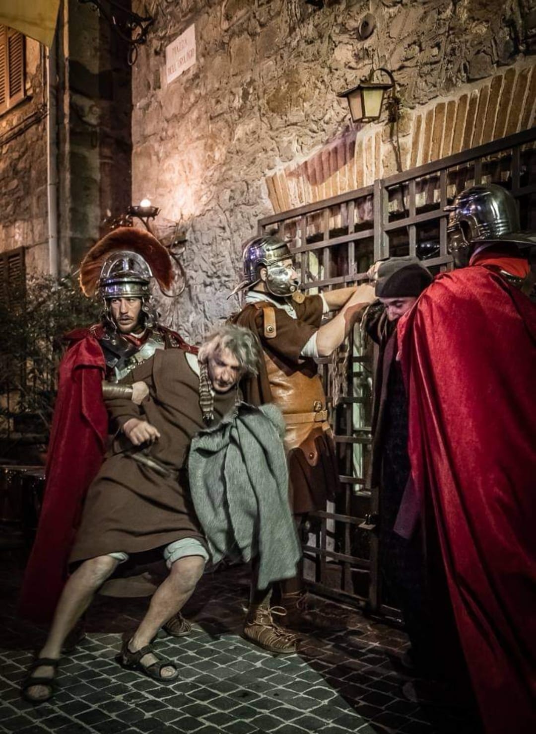 “Uno degli aspetti che rendono speciale la nostra rappresentazione è che i visitatori hanno modo di interagire con i figuranti e di assaggiare qualche prelibatezza preparata sul momento – sottolineano dall’associazione La Corte dei Miracoli -. Sono del tutto immersi nella rappresentazione ed entrano “fisicamente” nelle scene, in modo particolare in quelle che vengono allestite all’interno delle cantine, annullando la distanza tra figurante e spettatore”. Per Gesù bambino, “vero” anche lui, la tradizione vuole che generalmente siano scelti tre bambini, uno per ogni data della rappresentazione, tra quelli nati durante l’anno a Bolsena e che i loro genitori rivestano i ruoli di Giuseppe e Maria.