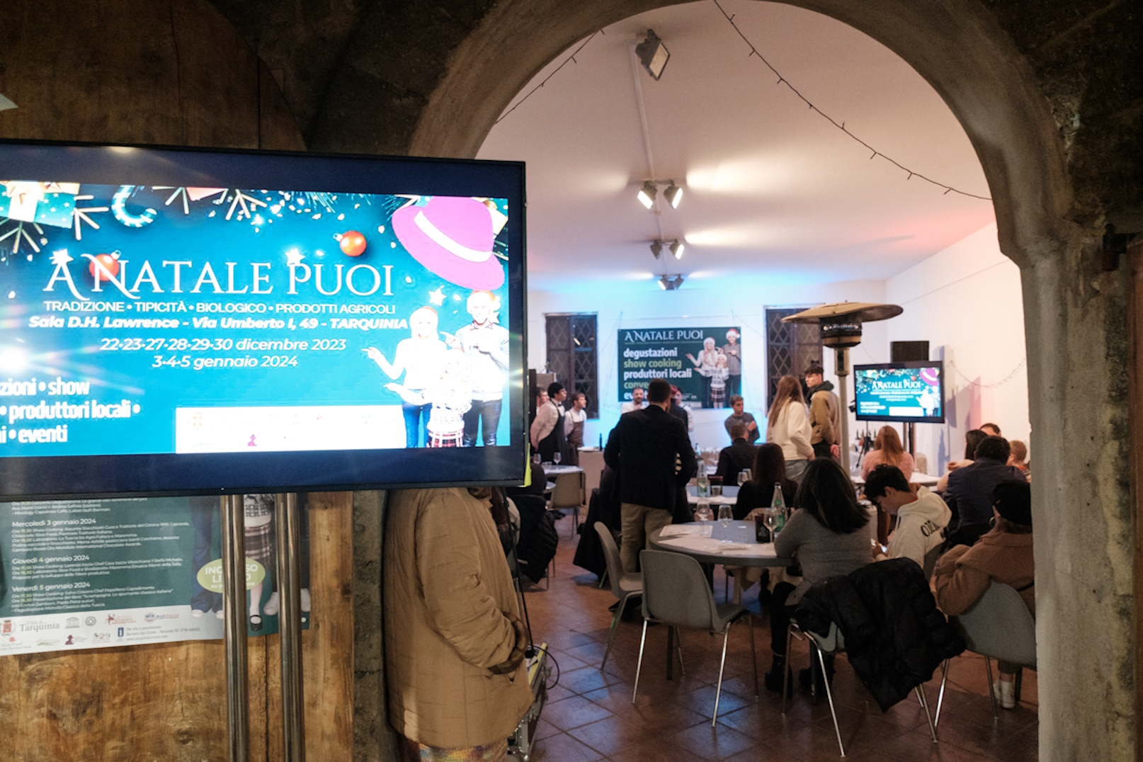 Prosegue poi la serie di eventi di “A Natale puoi”, la rassegna enogastronomica patrocinata da ARSIAL che propone all’interno della sala Lawrence in via Umberto I degustazioni, laboratori e show cooking che vedono protagonisti i prodotti enogastronomici e le aziende della Tuscia.