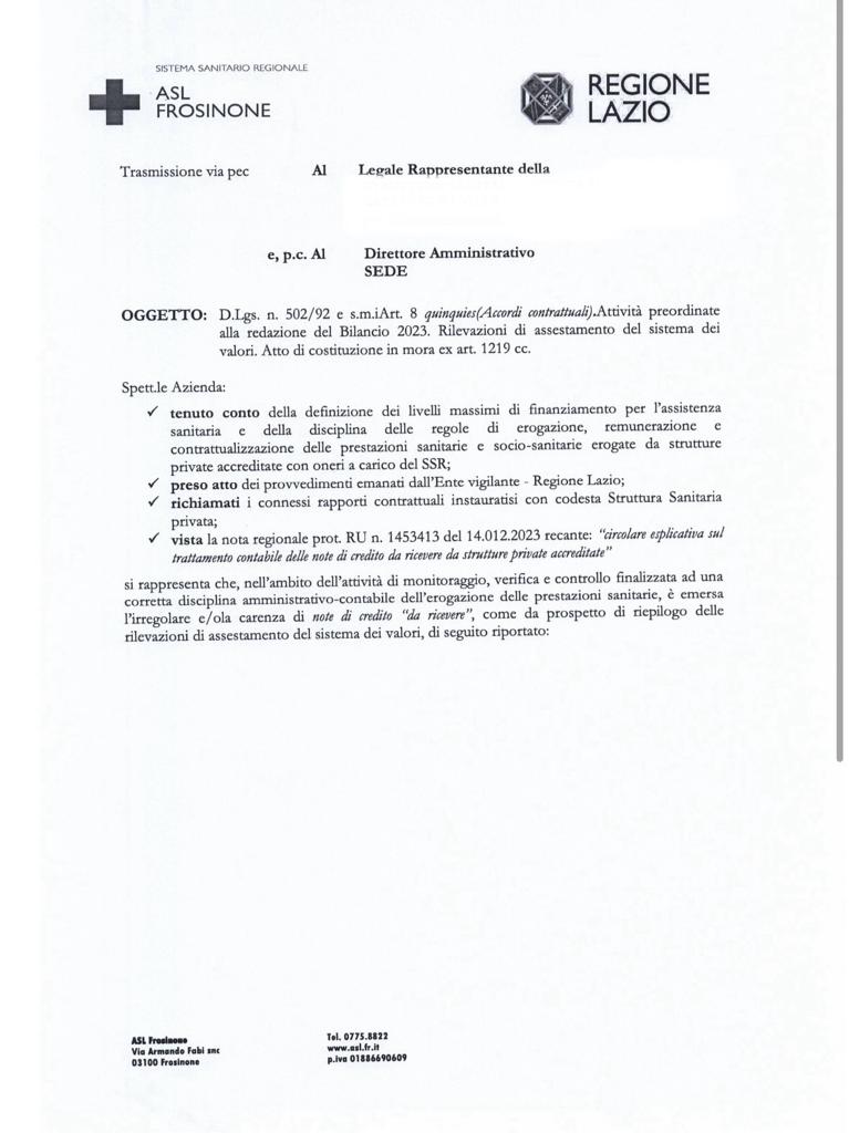 In queste ore stanno arrivando nella cassetta delle poste una sfilza di lettere di richiesta di note credito che sono state notificate alle strutture sanitarie dalla ASL di Frosinone per milioni e milioni di euro.