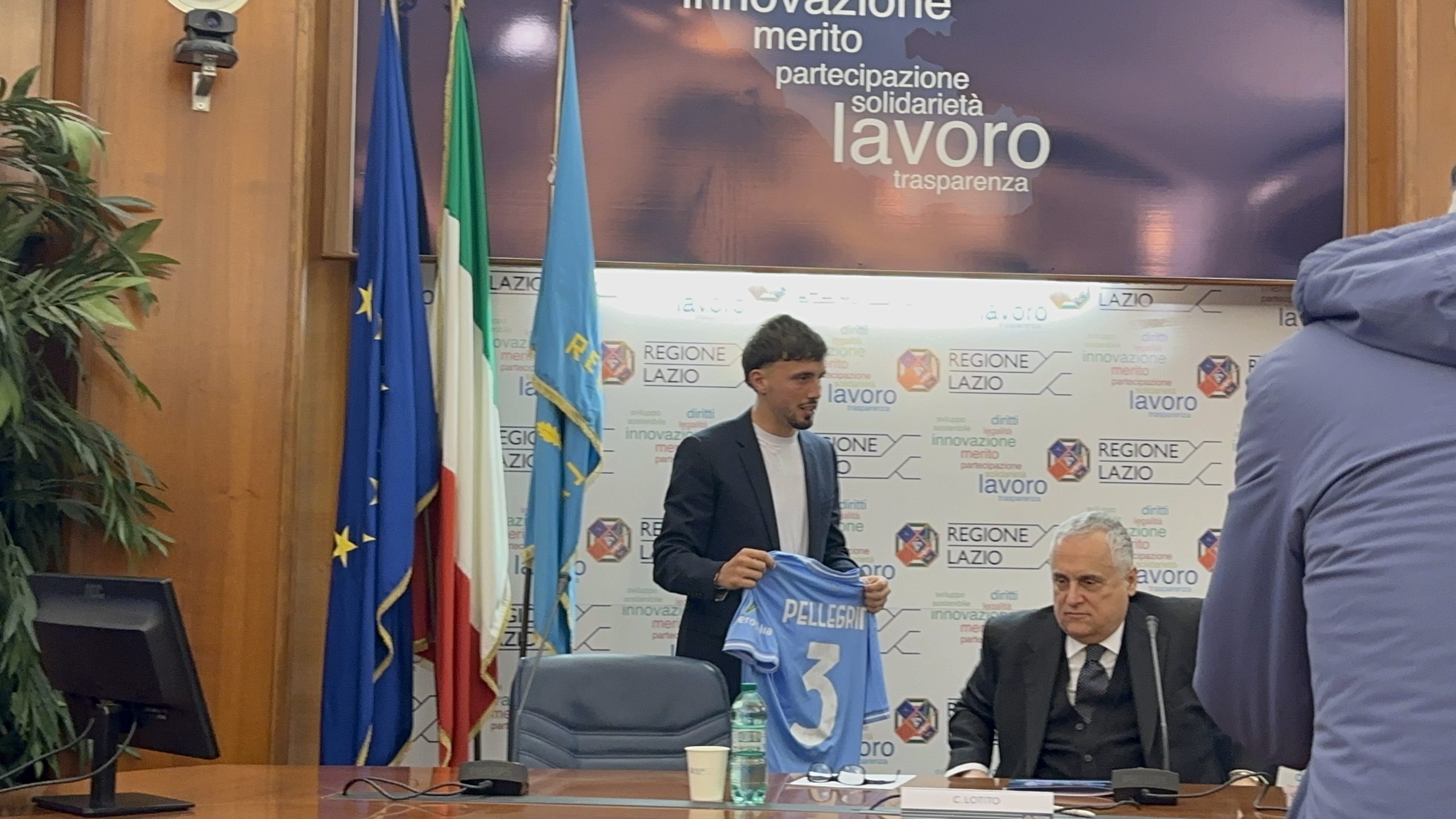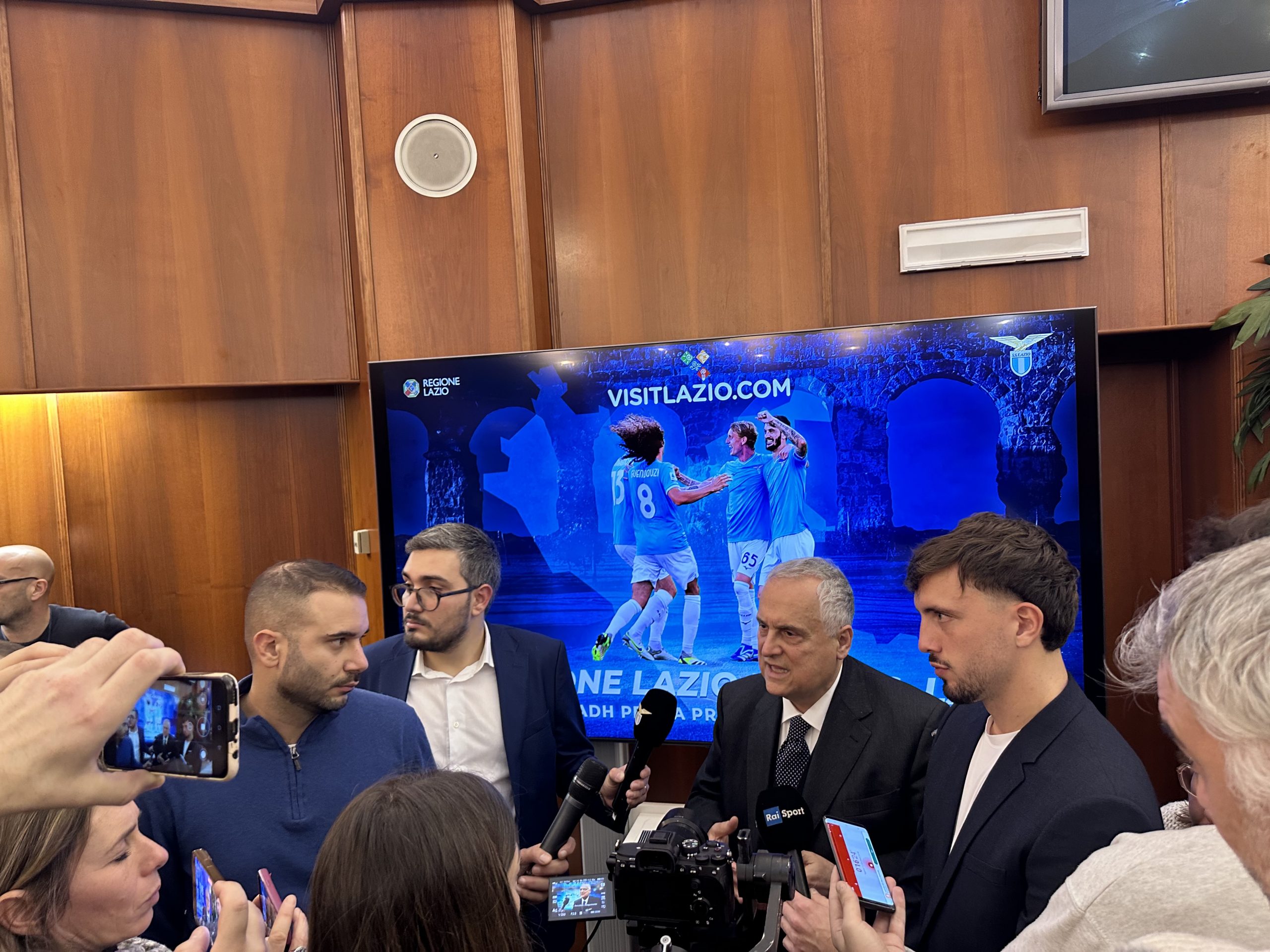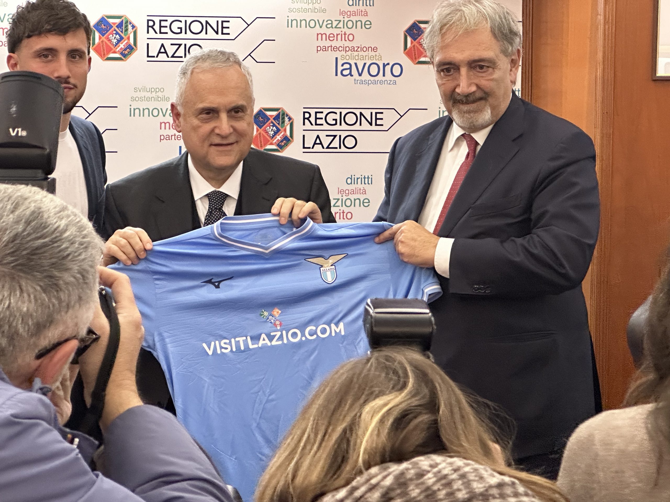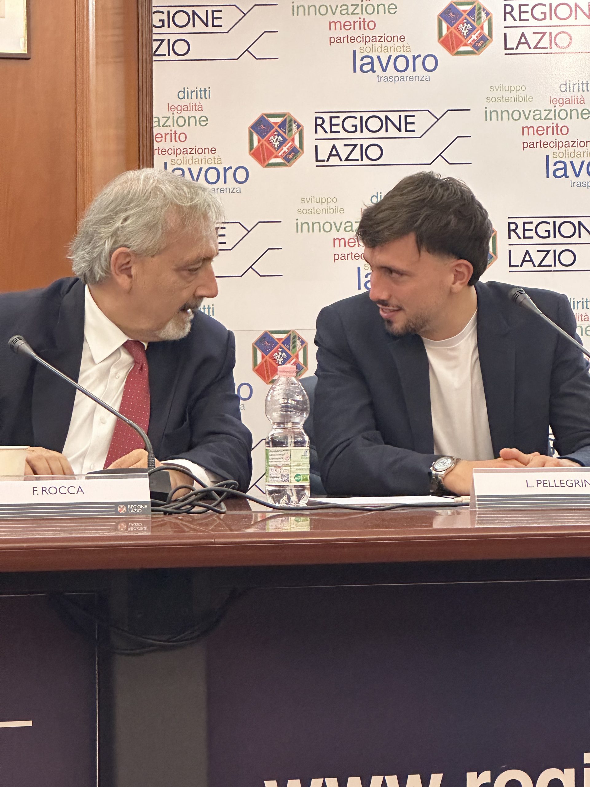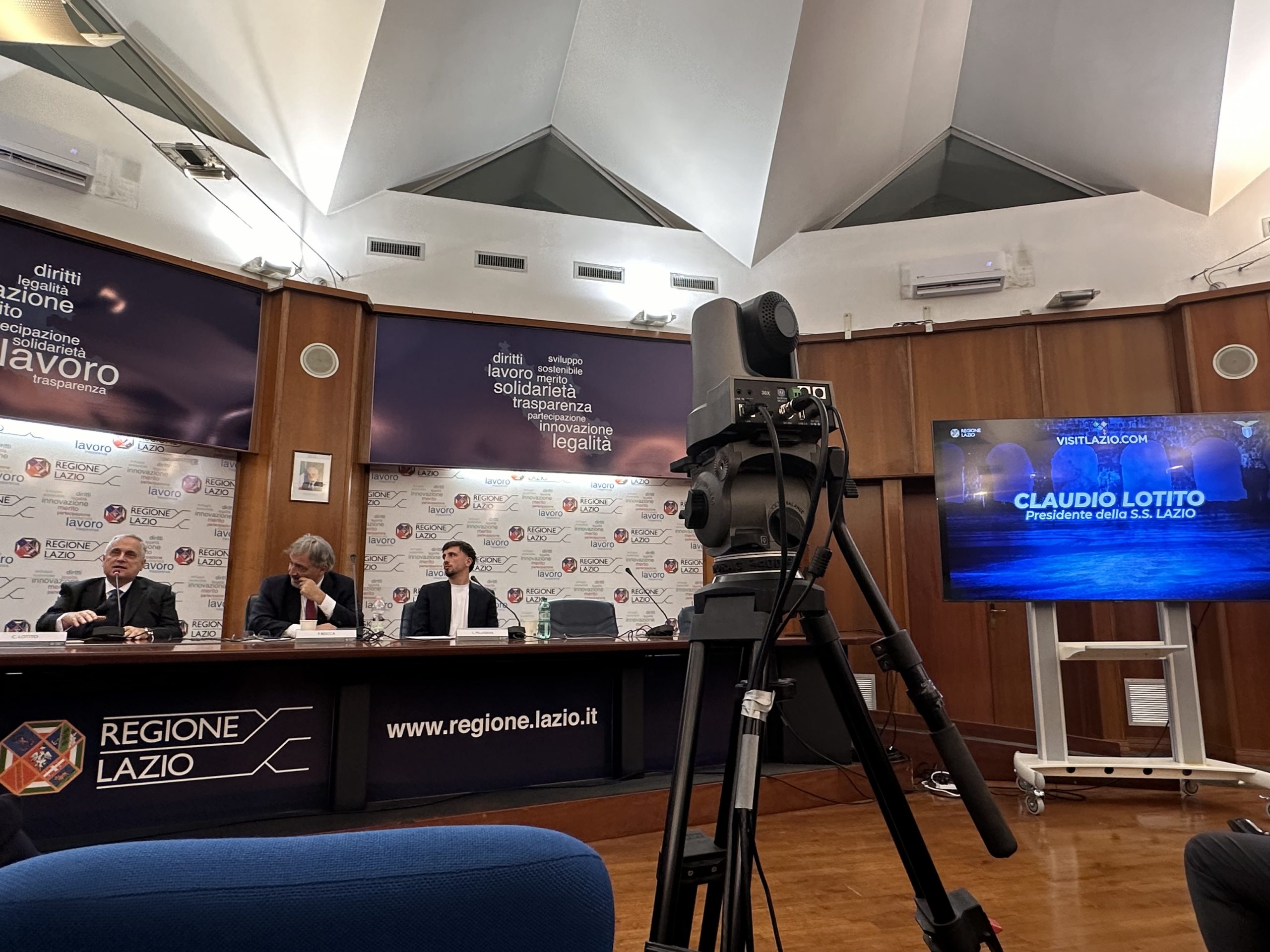 Nella conferenza stampa, presentata dal capo ufficio stampa della Presidenza della regione Daniele Di Mario, sono intervenuti il presidente della Regione Lazio, Francesco Rocca, il presidente della Ss Lazio, Claudio Lotito, e il calciatore Luca Pellegrini, in rappresentanza della squadra biancoceleste.