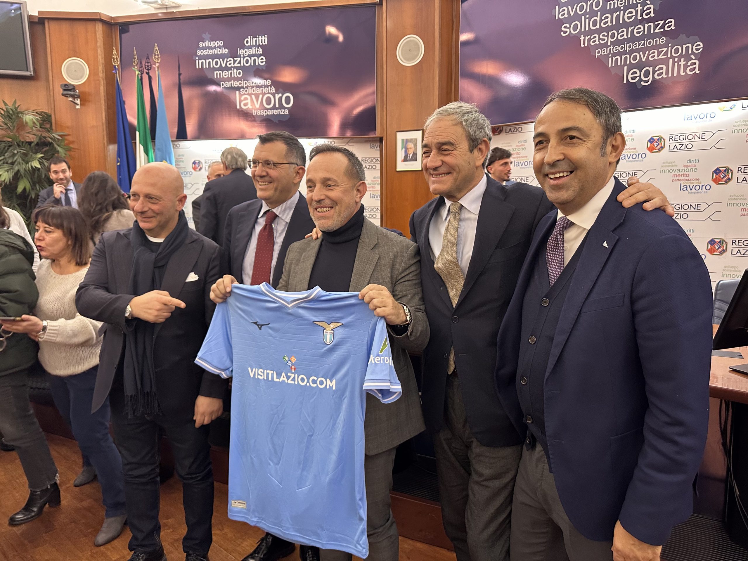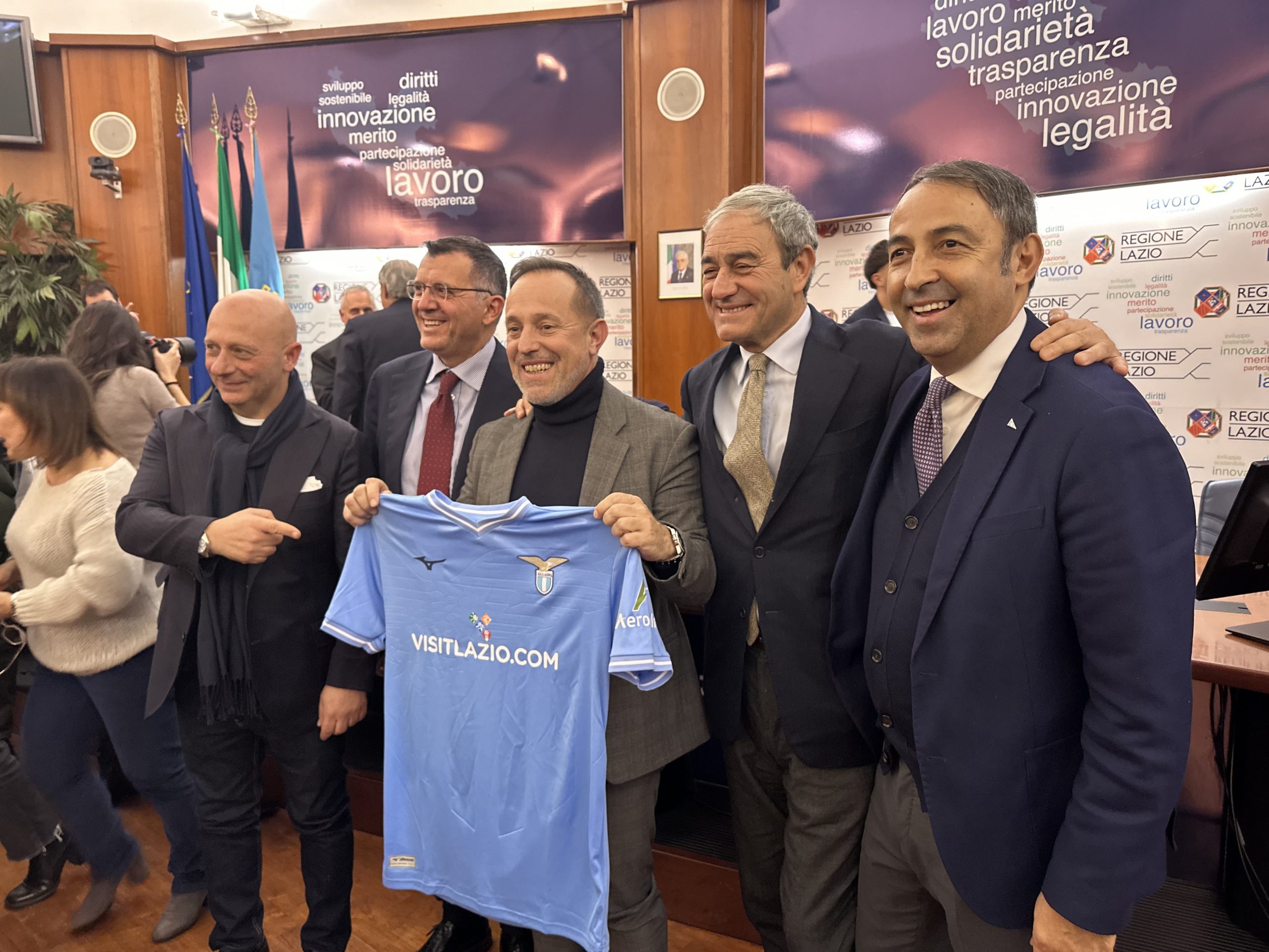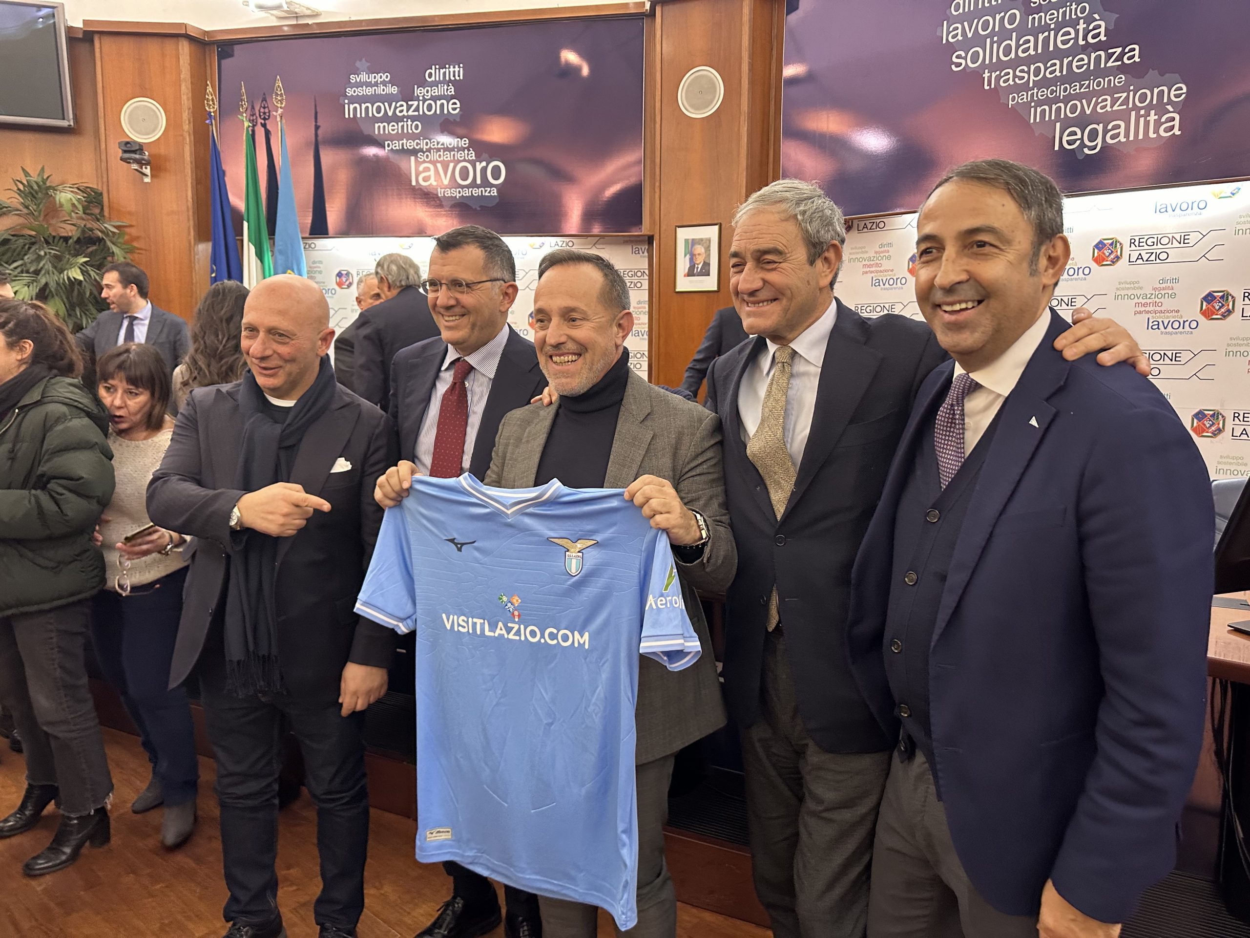 ROMA – La Lazio giocherà la final four di Supercoppa Italiana in Arabia Saudita con la scritta VISITLAZIO.COM sulle proprie maglie. L’accordo tra la società di Lotito e la Regione, approvato con una legge regionale e successiva delibera di Giunta, è stato presentato oggi nella Sala Tevere di via Cristoforo Colombo.